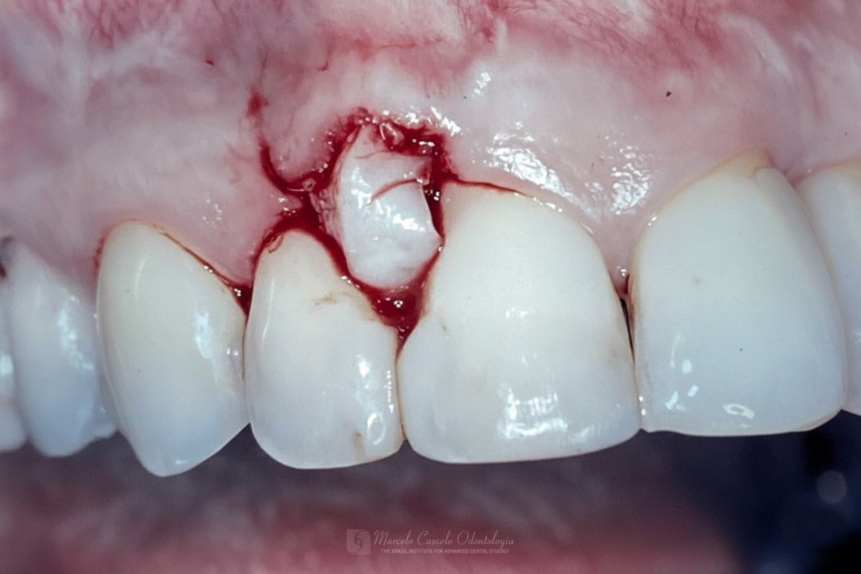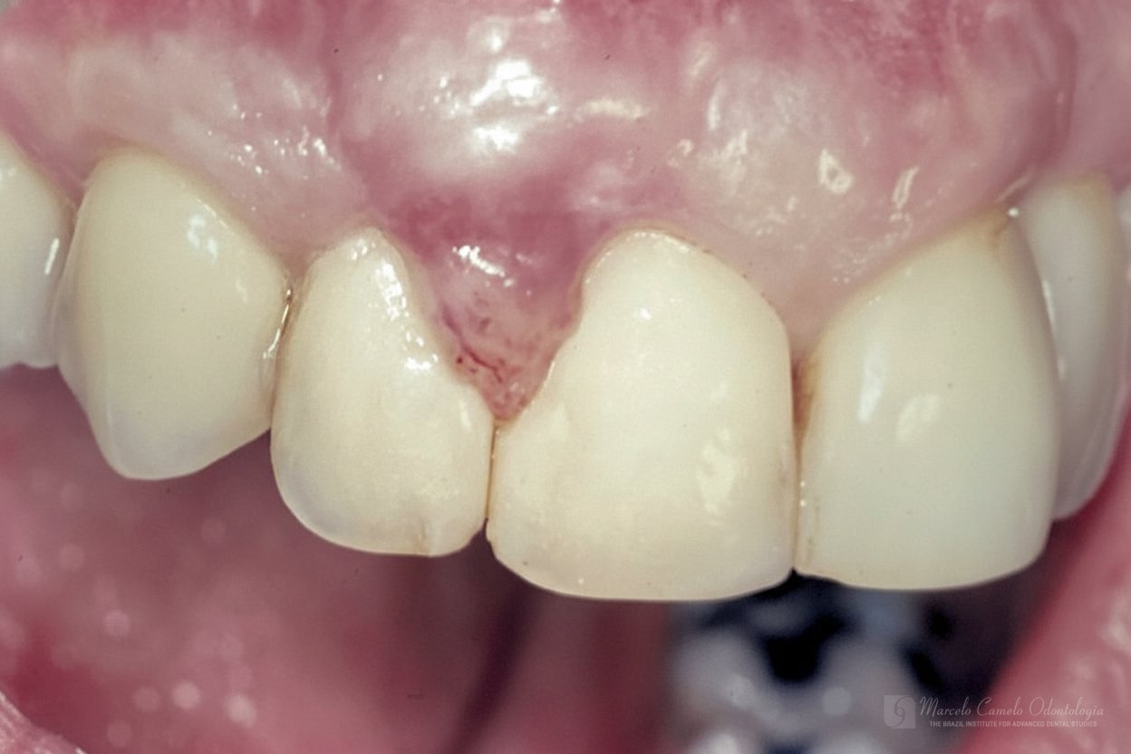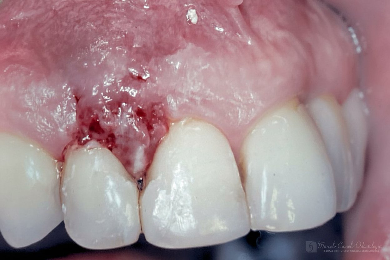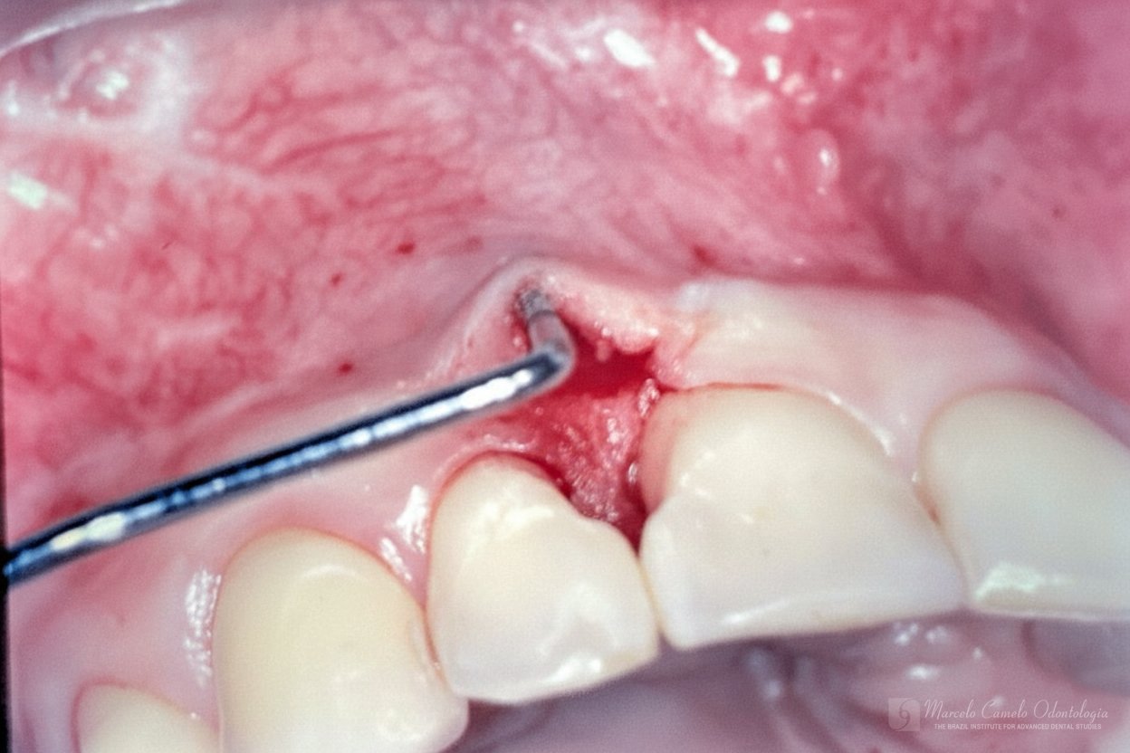 Para casos com boa qualidade de mucosa queratinizada, um envelope vestibular recebe a porção desepitelizada do enxerto pediculado.