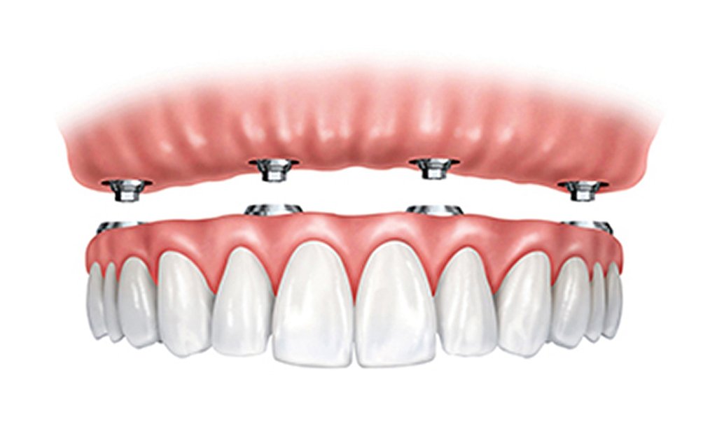 O processo ocorre através da implantação cirúrgica de “pinos”, ou seja, implantes de titânio (um material biocompatível – não rejeitado pelo organismo) sobre os quais, posteriormente, serão instalados uma peça protética em substituição aos dentes perdidos.